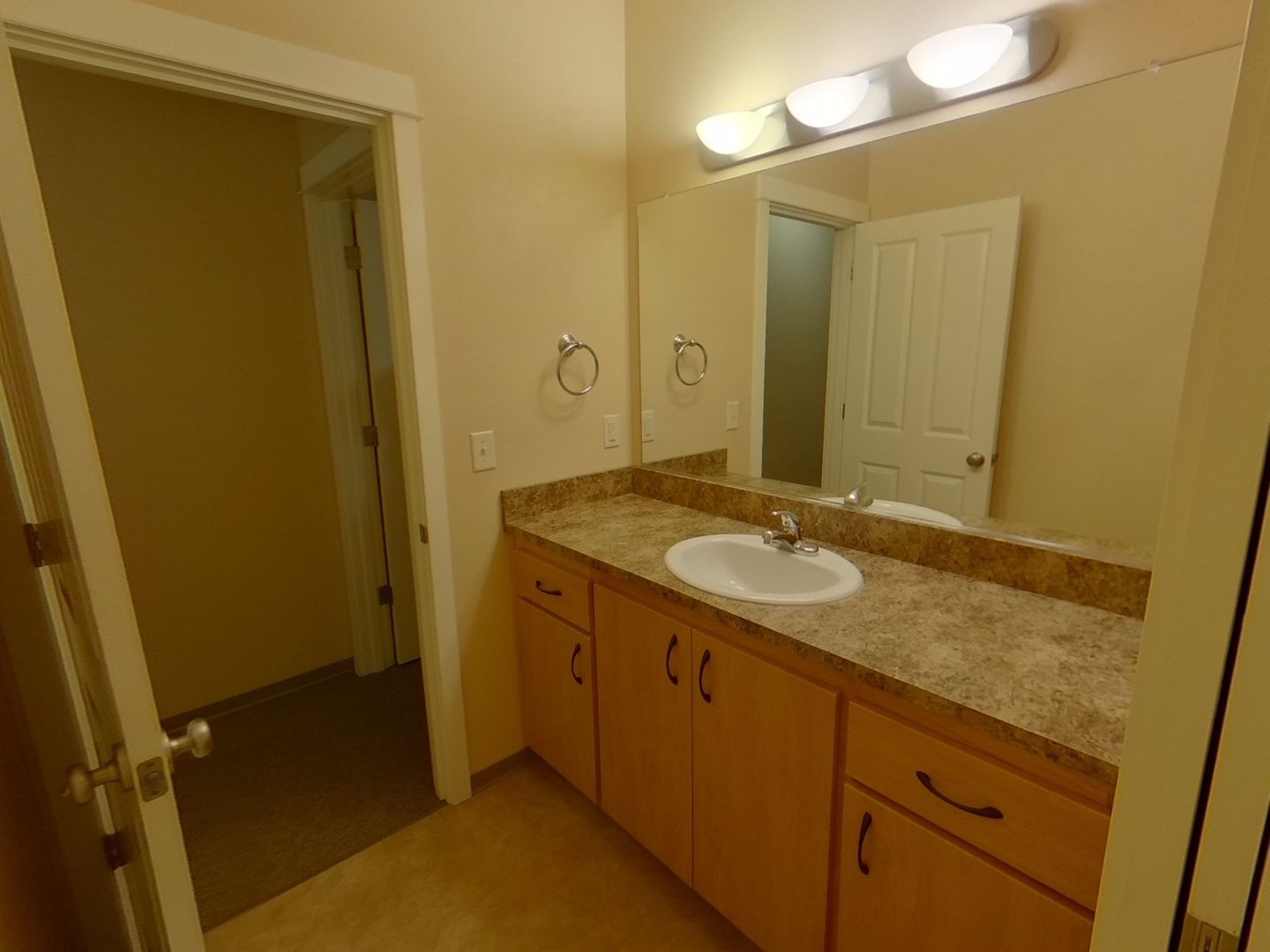 2nd floor: laundry, vanity, 2 beds, 1 bath and storage cabinets