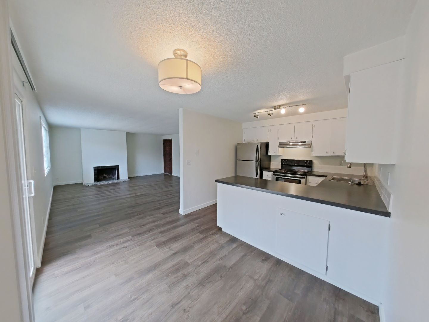 Updated 2 bedroom 1.5 bathroom apartment. Recently remodeled, everything in this unit has been updated to create a fresh, modern look and feel. This open floor plan home includes gorgeous luxury vinyl plank flooring throughout, stunning countertops, updated cabinetry, as well as updated energy-efficient dual pane windows, chic bathroom vanities, and interior doors. The kitchen has updated energy-efficient, stainless-steel appliances. Most units come equipped with a decorative fireplace in the living room (Fireplace is not for use, strictly for decorative purposes only). All lower-level units have dual-pane sliding glass doors leading to a private fenced yard of approximately 650 sq. ft. Property is conveniently located in one of South Eugene’s favorable neighborhoods, just one block from restaurants, coffee shops, retail and Market of Choice. Less than ½ mile to Amazon Park and community center; Approx. 2 miles to downtown and UO. There is on-site laundry with newer machines with option of coin/op or app-based pay. One off-street parking space is provided in adjacent parking lot and plenty of additional street parking is available. The water and sewer are on a shared meter and are billed by the management company. The owner provides yard care and landscape maintenance. Tenant pays for unit electric, and a pro-rated share of common area electric, water/sewer, and garbage service.