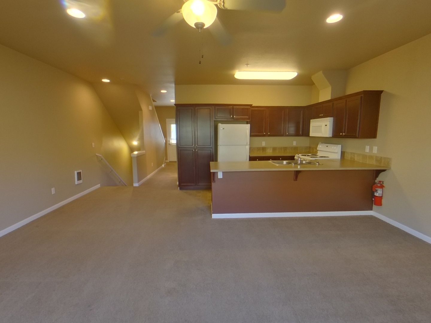 Newer, generous town home designed units near campus. Three full bath rooms. Oversize rooms and living space. Secure, heated double car garage with automatic openers. Ceiling fans in all bedrooms and living spaces. Dishwasher, Plush Carpet, Vaulted Ceilings on Top Floor, Custom Cabinets, Washer and Dryer included, Private patios and balconies. Tenants are responsible for water, sewer and electricity.