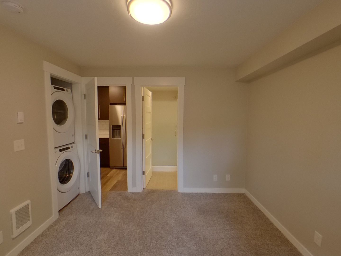 Completely remodeled, bottom floor unit. Just a few blocks from campus! Each unit has its own washer/dryer. Beautiful vinyl plank flooring throughout living room and kitchen and new carpet in the bedrooms. Remodeled kitchen features new dark cabinets with stainless steel appliances, including dishwasher, microwave and garbage disposal.